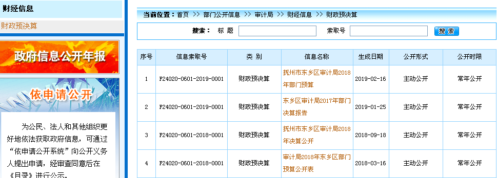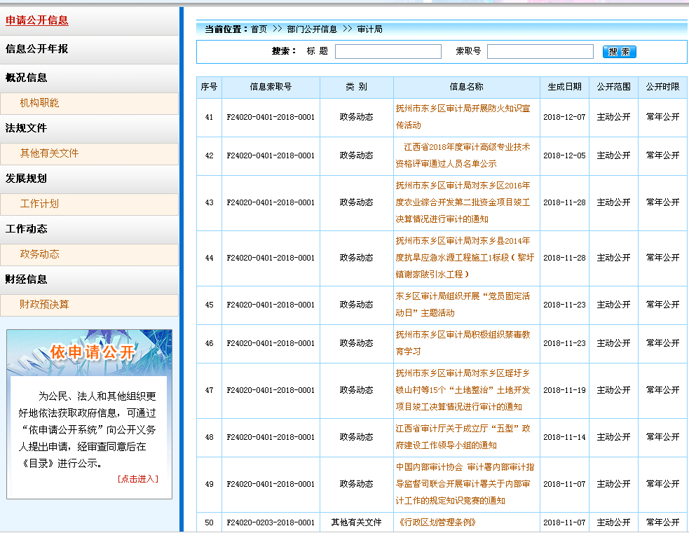 撫州市東鄉區審計局2018年政府信息公開工作年度報告
